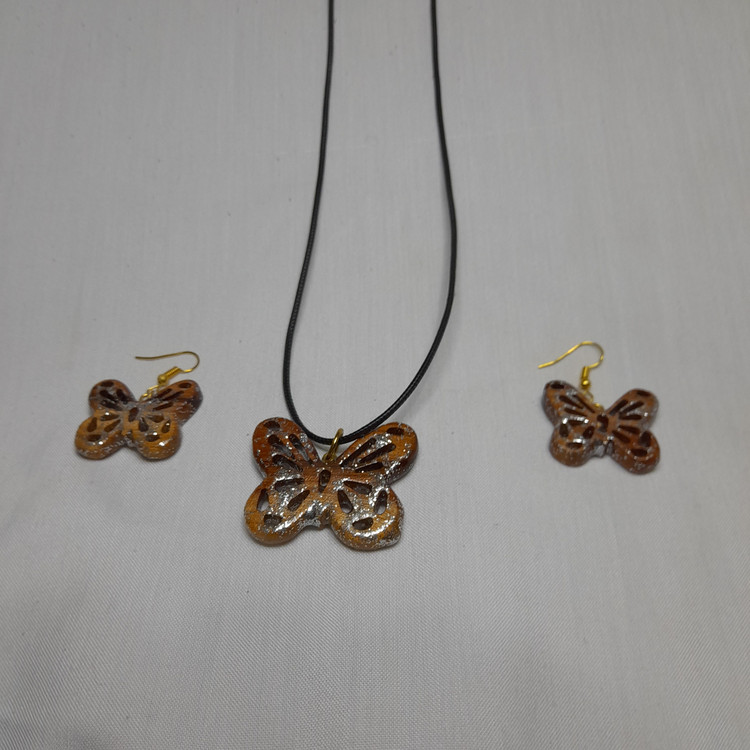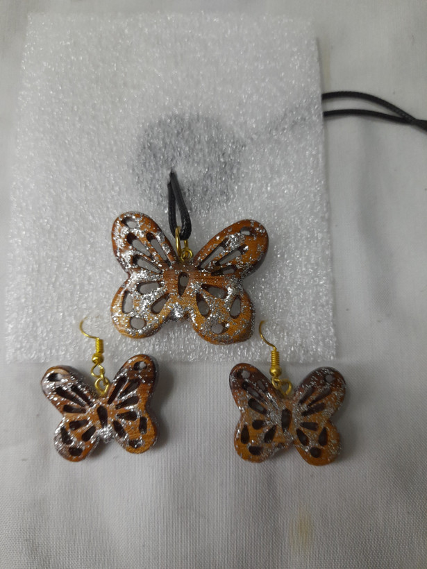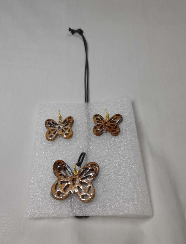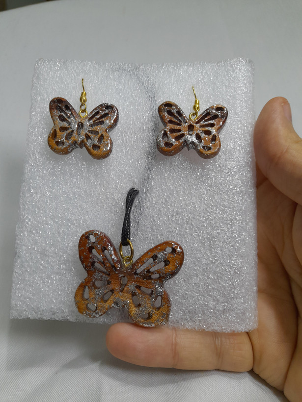 ست چوبی گوشواره و گردنبند طرح پروانه