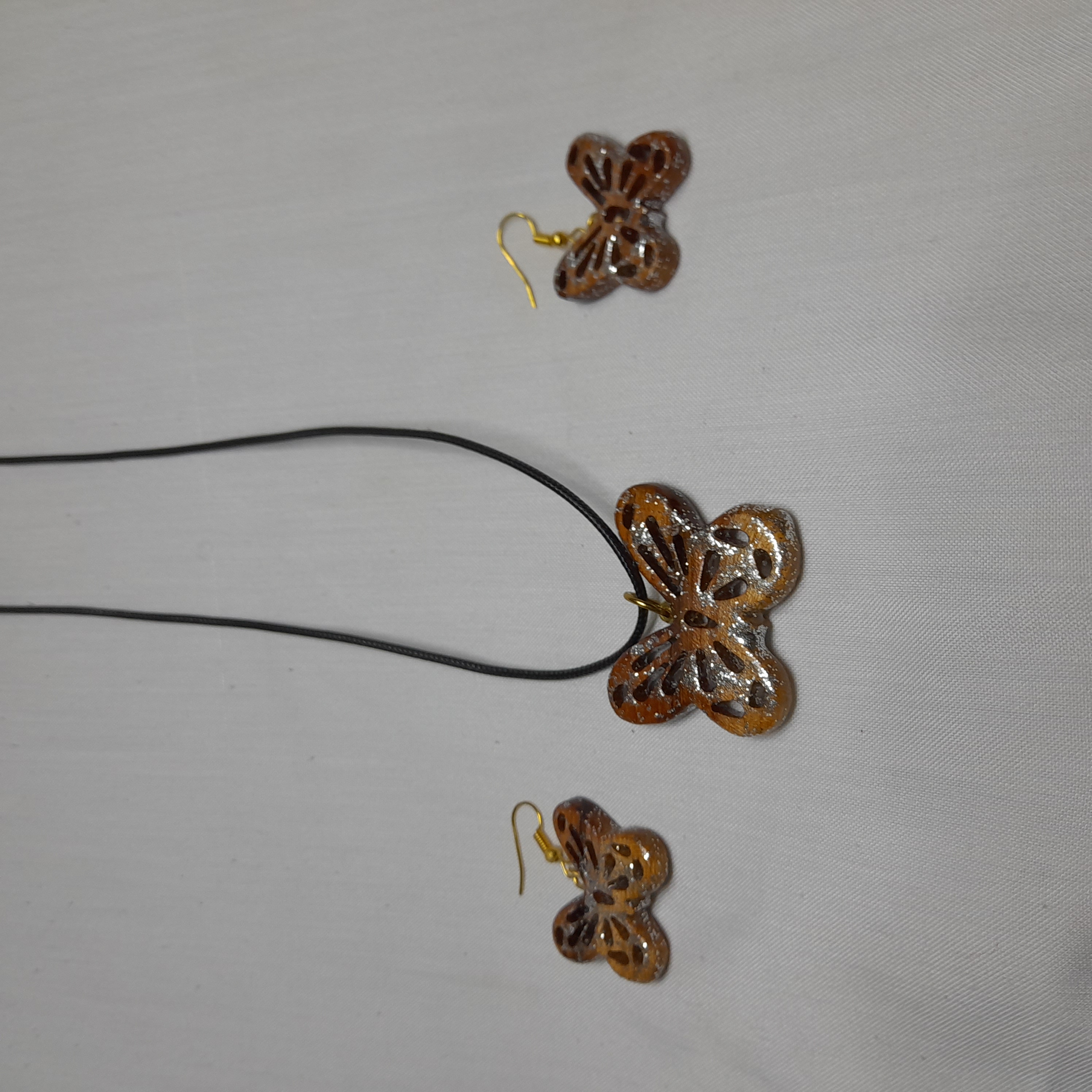 ست چوبی گوشواره و گردنبند طرح پروانه