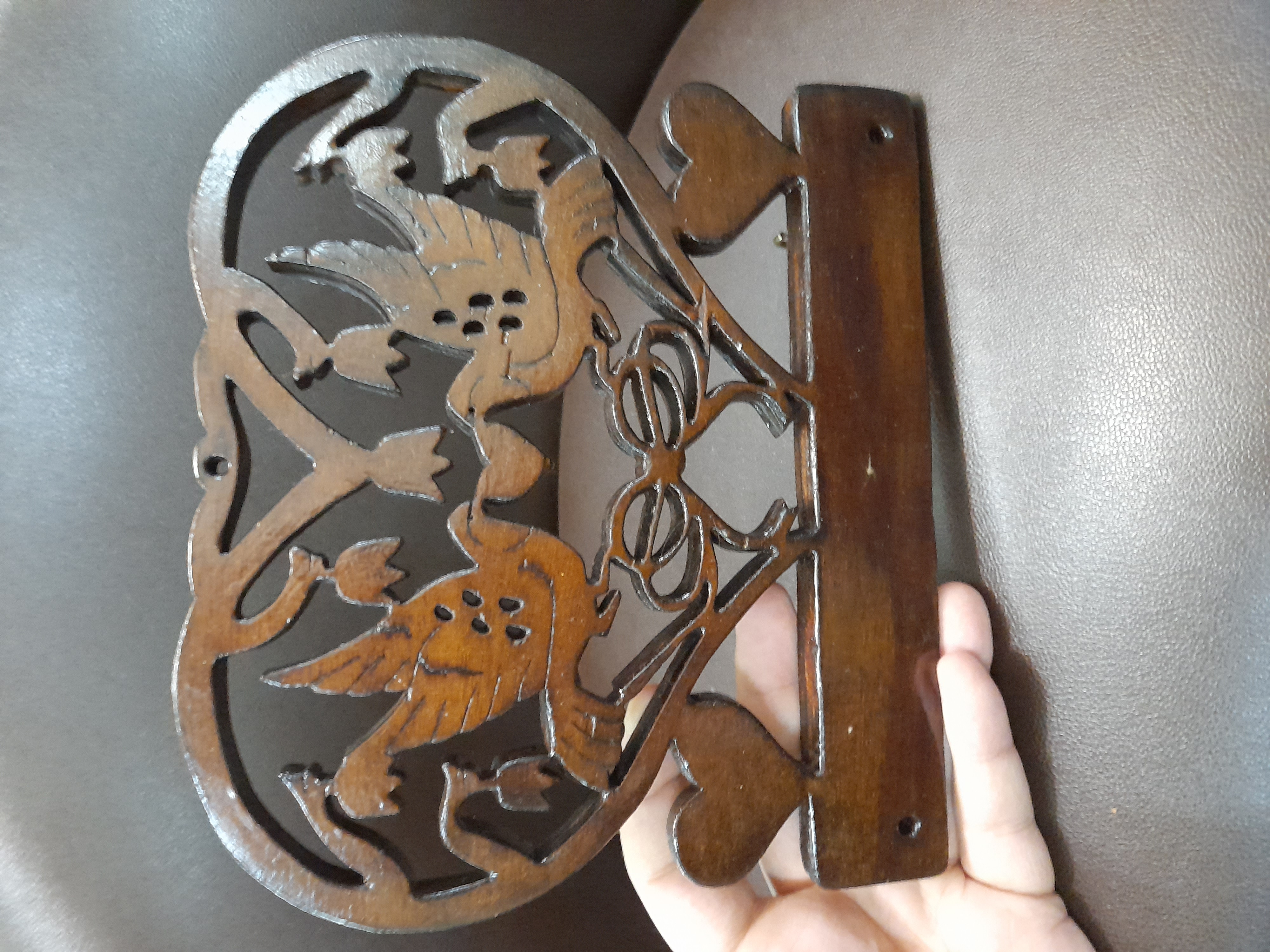 جاکلیدی دو پرنده و قلب رنگ تیره استفاده شده از چوب مرغوب ایرانی دارای سه عدد حلقه آویز جاسوئیچی ابعاد: ۲۱ در ۱۸ سانتیمتر