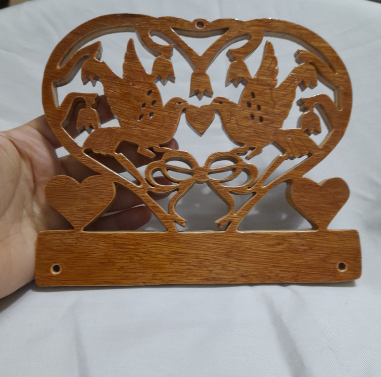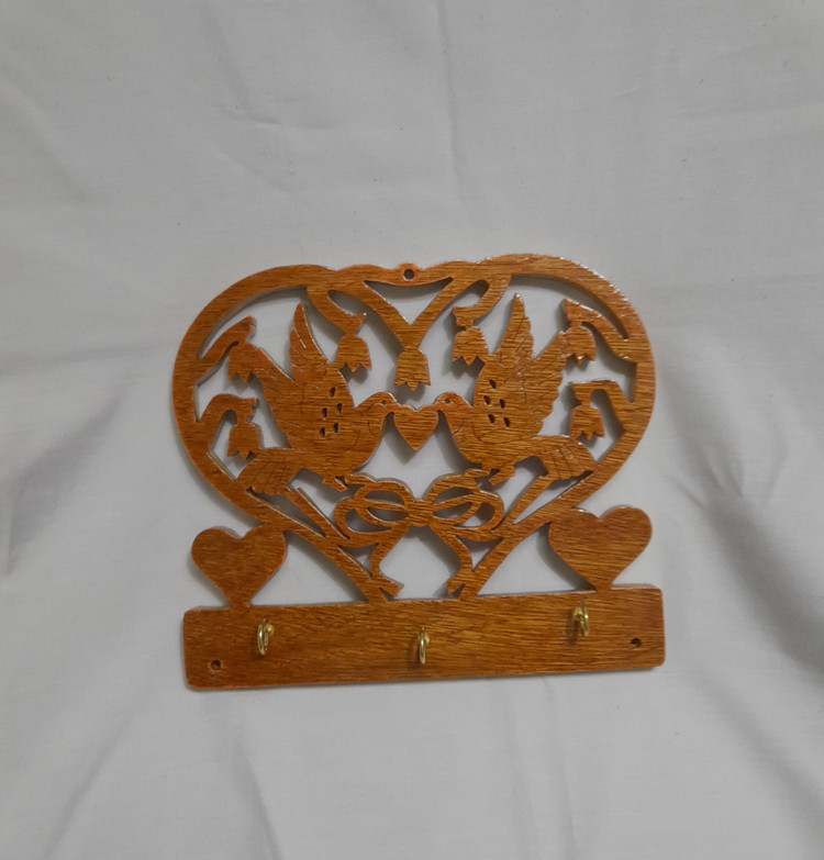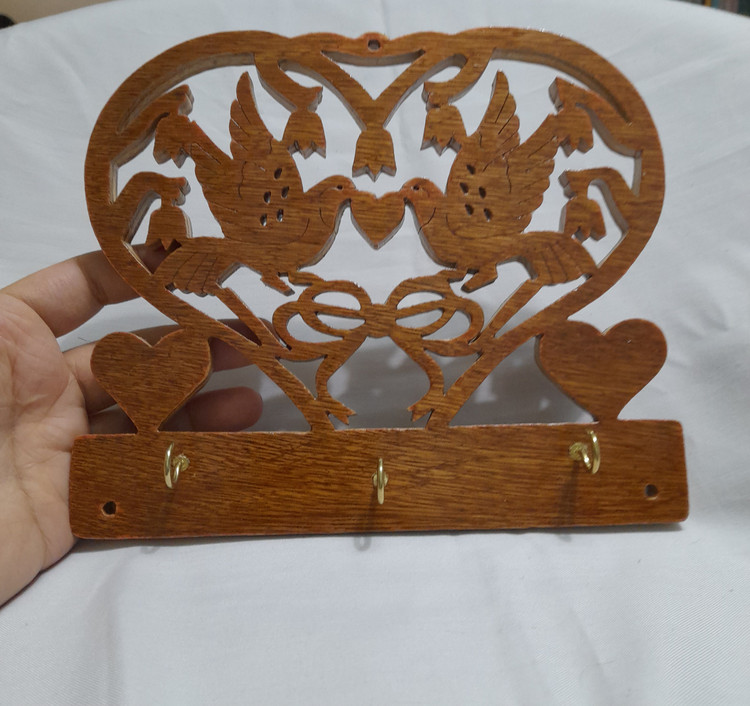 جاکلیدی چوبی طرح دو پرنده و قلب رنگ روشن استفاده شده از چوب مرغوب ایرانی