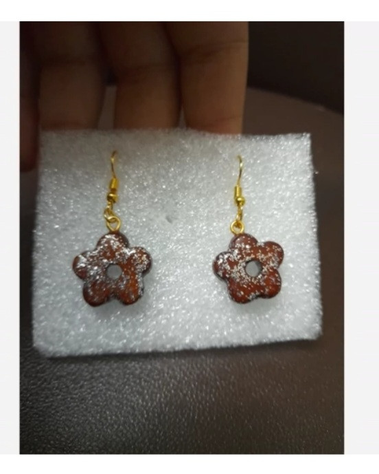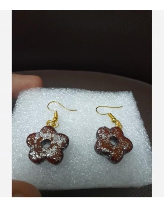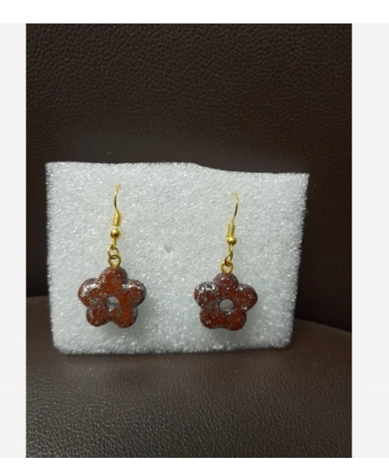 گوشواره چوبی معرق کاری طرح برگ گل کوچک